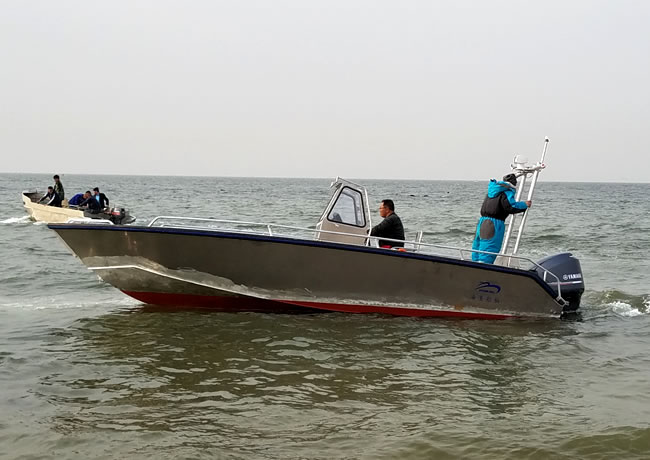 该类型多功能铝合金艇可广泛应用于休闲钓鱼,搜寻救援,巡逻执法等用途。铝合金艇与传统玻璃钢及钢制船艇相比具有强度高,自重轻,耐腐蚀,易维护,结实耐用,绿色环保,性价比高等优点,已逐渐成为未来中国的中小型船艇行业发展趋势。